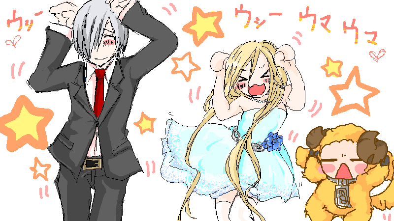 最近、絵も描いてなかったので、久しぶりにゼロサンを誘って、ウマウマやっちゃいましたヽ(*´∀`*)ノ ちょっと、作業用の音楽探してニコニコ見てたら、ECOのウマウマ見つけてしまって、便乗気味にやっちゃいました(´ー+`)b スリーピーが一歩間違えるとサンリオのキャラにになってしまいそうだぜぃ。 ガクガクブルブル((((;゚Д゚))) ECOでは友情システムとかも実装されてる、って言うのに…。 まだ、どんなものか、見てすら居ないし…。 ぅう;;時間が……orz でも、ちゃっかりネクタイだけは貰いましたよ(*´д`*)b 以上、久しぶりのショコラでした(*´┓` *)b